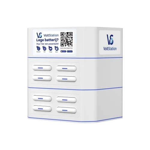 Download the VoltStation app, find the nearest station on the map, scan the QR code, and a powerbank pops out. The whole thing takes about 10 seconds.